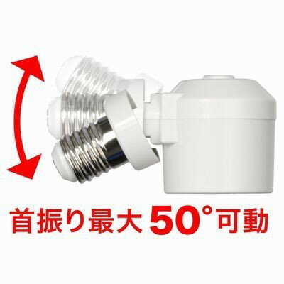 ●可動範囲/左右:332°回転/上下首振り:最大50°可動 ●耐荷重量:350gまで ●器具の形状によっては、LED電球が中心にこない場合があります。